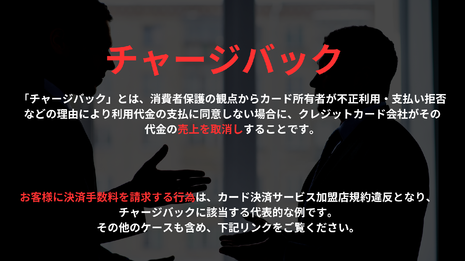 契約解除に値する《重大禁止事項》一部抜粋 ・加盟店の役員、従業員が自らカード会員として、カード加盟店たる自己において、カード を使用すること。 ・第三者(他の会社)に使用させる、または使用することを容認し、あたかも加盟店が取引 をしたかのように装うこと。 ・真実は取引がないのに、それがあるかのようにカード会員(加盟店役員・従業員含む)と 通謀しあるいはカード会員に依頼して取引があるかのように装うこと。 ・租税滞納処分、公的年金未払照会、仮差押え、法令違反など、行政処分が判明した時。